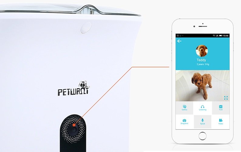 Con este comedero automático inteligente podremos poder alimentar a nuestra mascota desde la distancia, a su vez, gracias a su aplicación de móvil compatible con iOS y Android podremos tener un control exhaustivo de sus comidas y además poder controlar a nuestra mascota, viéndola a traves de vídeo, escuchándola, mandandole mensajes de audio, y grabando todo lo que sucede a la vez si queréis o tomando fotos.