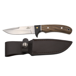 11. Cuchillo de caza Third 15024PW, con hoja de acero 440 de 12 cm acabado satinado, mango de pakkawood. Incluye funda de piel.
