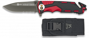 Navaja táctica rui titanio - roja, con cutter cinturón doble y punta r...
