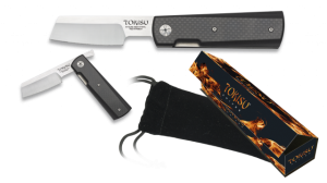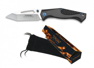 18. Navaja táctica  de estilo japonés Tokisu, mango de fibra de carbono y G-10, hoja de 9 cm con terminación CNC, fácil apertura con una mano
