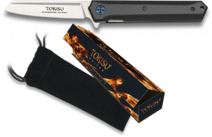 26. Navaja táctica  de estilo japonés Tokisu, mango de fibra de carbono y G-10, hoja de 9 cm con terminación CNC, fácil apertura con una mano