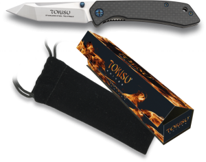 3. Navaja  Tokisu, hoja de 6,6 cm en acero 7Cr17MoV, mango G-10 y fibra de carbono, apertura fácil con una mano