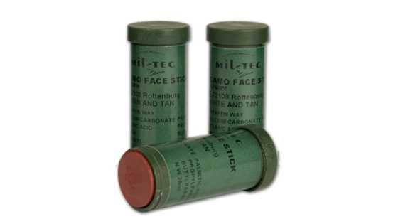 La pintura militar se aplica a la cara y a otras partes expuestas de la piel para ocultar el brillo. Debido a los aceites naturales, la piel tiende a brillar y puede denunciar su posición.
