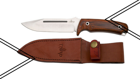 Cuchillo de caza de la marca Third con hoja de acero de 13 2 cm mango de pakkawood con funda de piel.