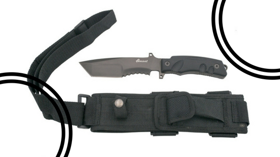 Cuchillo táctico 14307 con hoja de acero 420 de 15,8 cm en negro, mango de G10 negro, funda de nylon.