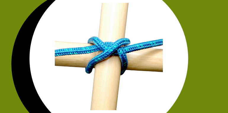 Nudo de Yugo: Variante del nudo constrictor nos permite unir dos elementos rígidos en forma de cruz, muy útil en la construcción de estructuras.
