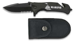 Navaja albainox negra, con mango de aluminio, hoja de 8,3 cm con sierr...