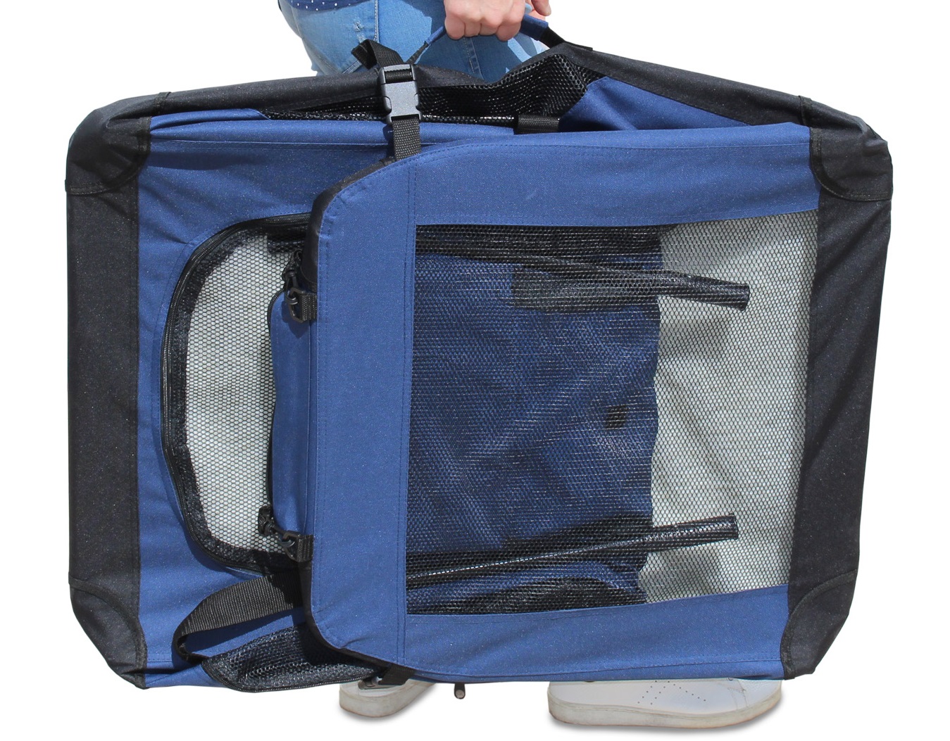 Gracias a sus 3 aperturas con cremallera y fácilmente plegables, usted no tendrá problemas en dejar que el animal se familiarice con el transportin, pudiendo cerrar las aperturas laterales e introducir al animal por su apertura superior en caso de que no desee entrar en ese momento al transportin, además con sus puertas y ventanas de malla, el animal tendrá visibilidad de todo en todo momento, lo cual hará que el animal viaje más trankilo y sin ese agobio de encerramiento.