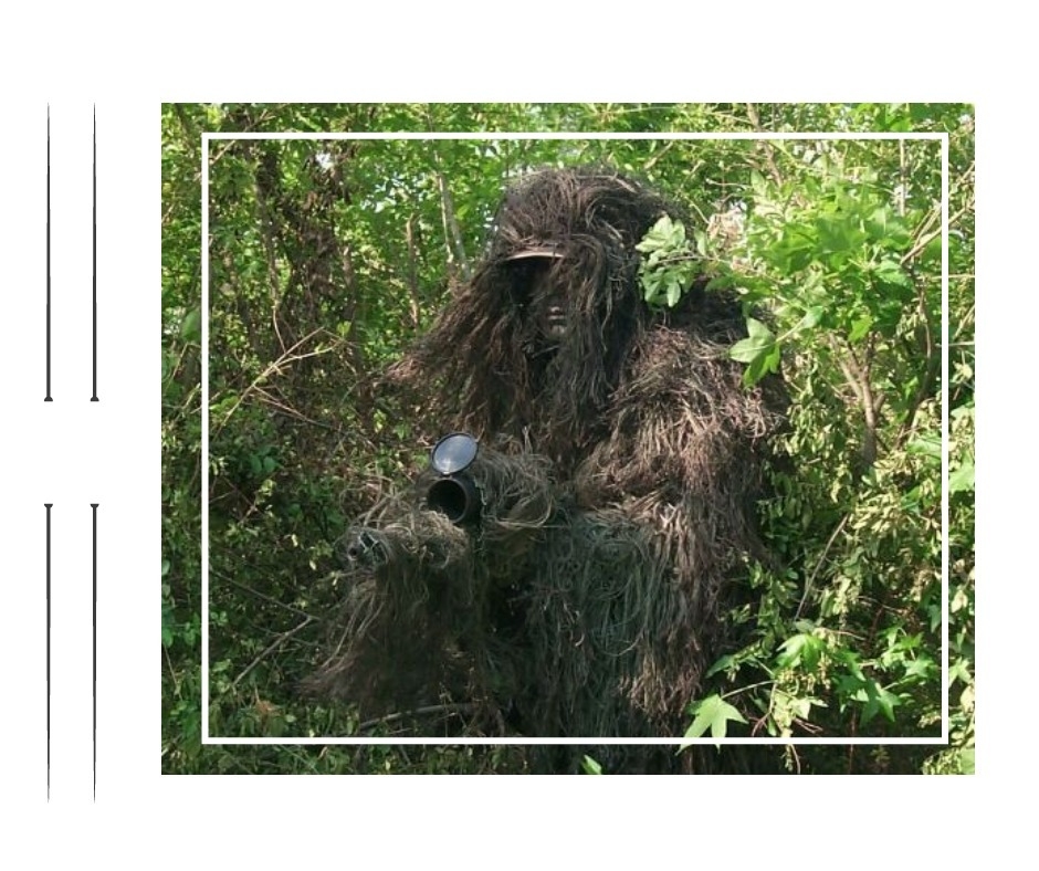 Las tiras del camuflaje sirven para 3 propósitos: ayudan a romper la silueta humana, replican el follaje natural-vegetal que rodea la posición al tirador, y proporcionan un aspecto tridimensional al camuflaje.