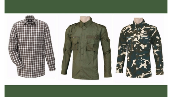 Teóricamente cualquier camisa con un color terroso o estampa camuflada sería suficiente para identificarla como teniendo estilo militar, pero todavía existen modelos que toman prestado elementos como los bolsillos laterales con tapa. Botón y solapa para sostener la manga a la altura del codo.