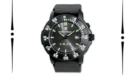Reloj SMITH & WESSON modelo S.W.A.T. negro con esfera en color negro y corona giratoria con correa de caucho.