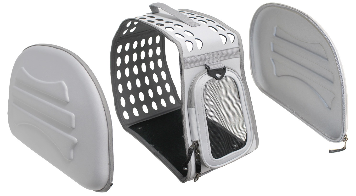 Este transportin es totalmente desmontable, lo cual es ideal para su limpieza y manejo, además gracias su sistema de cierres con cremalleras, es de muy fácil montaje y despiece, tan sencillo que no necesita ni de un manual de instrucciones. Ademas sus cubiertas laterales son totalmente rígidas, no son de plástico duro, si no de otro material rigido y más acolchado, lo cual permite la absorción de golpes y choques, ideales para la seguridad de su mascota.